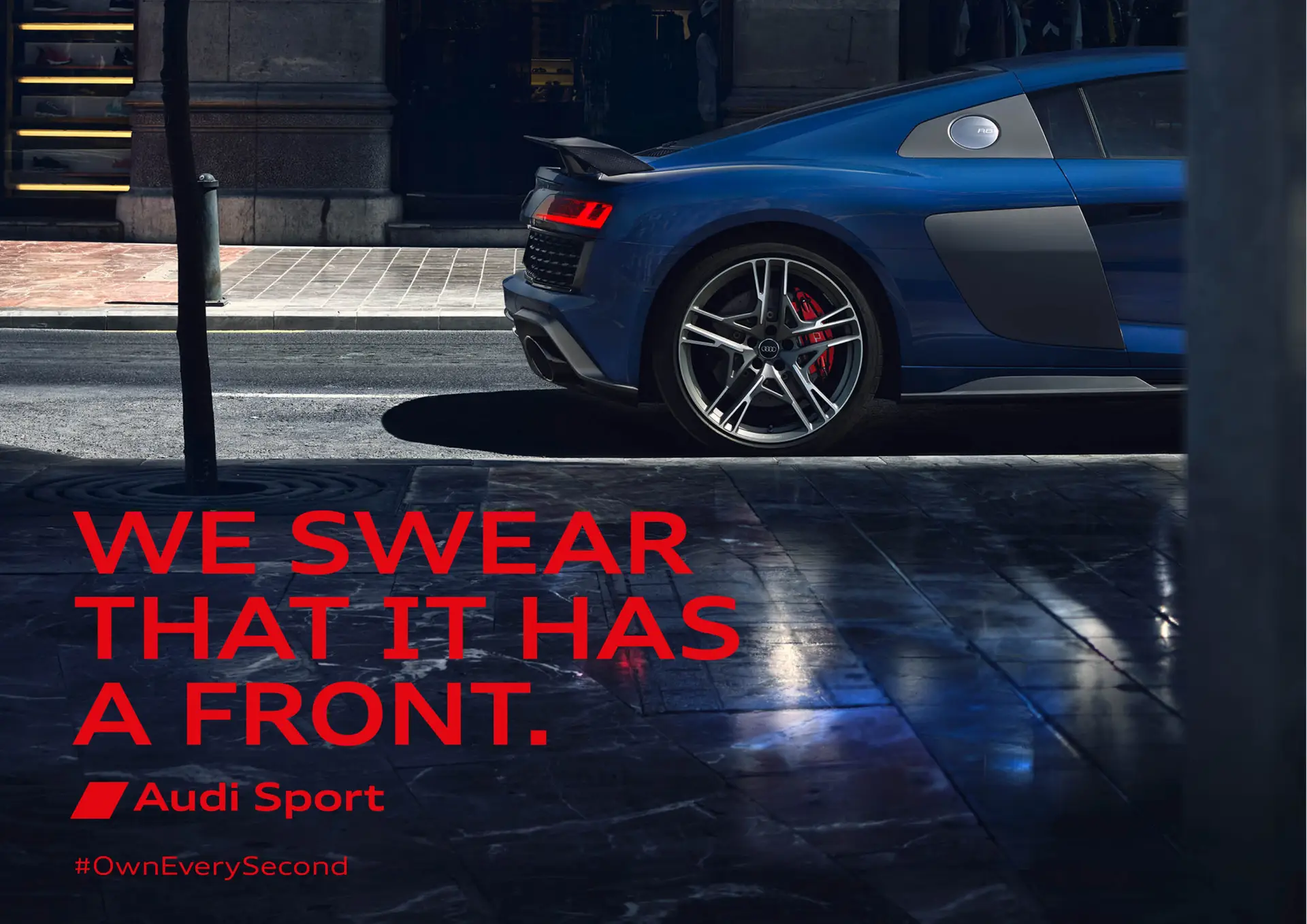 A deliberate inversion of the chase, turning the R8’s rear into the true object of desire.